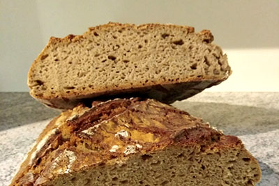 Unser Bauernbrot ist ein Sauerteigbrot mit Roggen-, und Dinkelmehl aus eigenem Anbau. Um den Geschmack abzurunden, kommt nur Salz dazu.